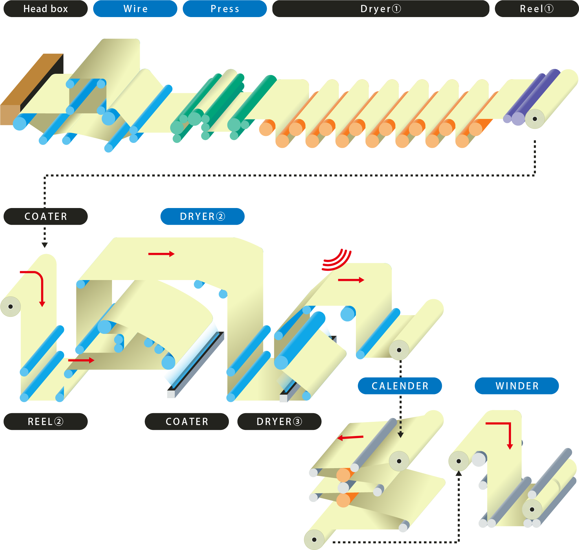 OSAKA FUJI Corporation also has superior technological capabilities and a proven track record in the paper manufacturing industry in the field of facility repair and refurbishment. We provide overlay welding services for equipment used in the front-end process, which handles the raw materials, and thermal spraying services for equipment used in the back-end process, which is referred to as the papermaking process.