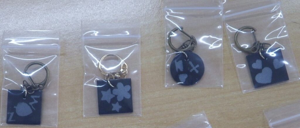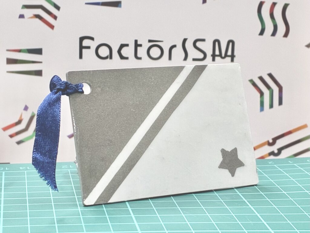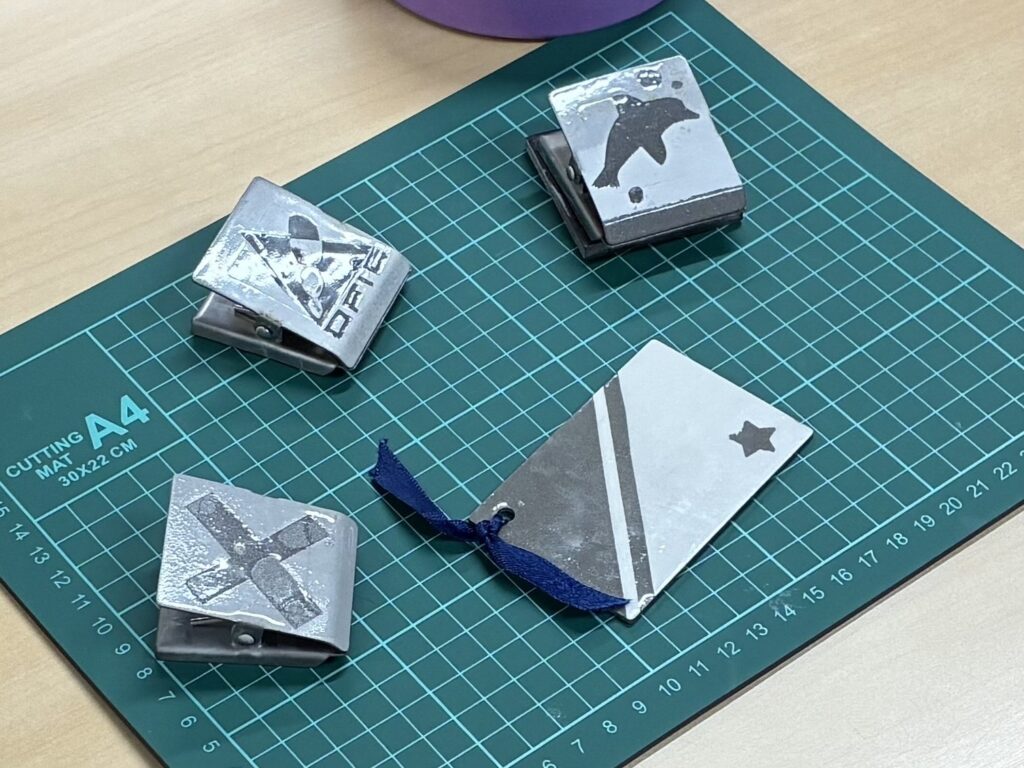 続いて、ワークショップでは 「溶射を用いたノベルティ製作」 を実施。マグネットやミラーにマスキングを施し、ロボットによる溶射でオリジナル模様を作成する工程を体験していただきました。完成する瞬間を間近で見ることで、溶射技術の魅力を実感いただけたと思います。